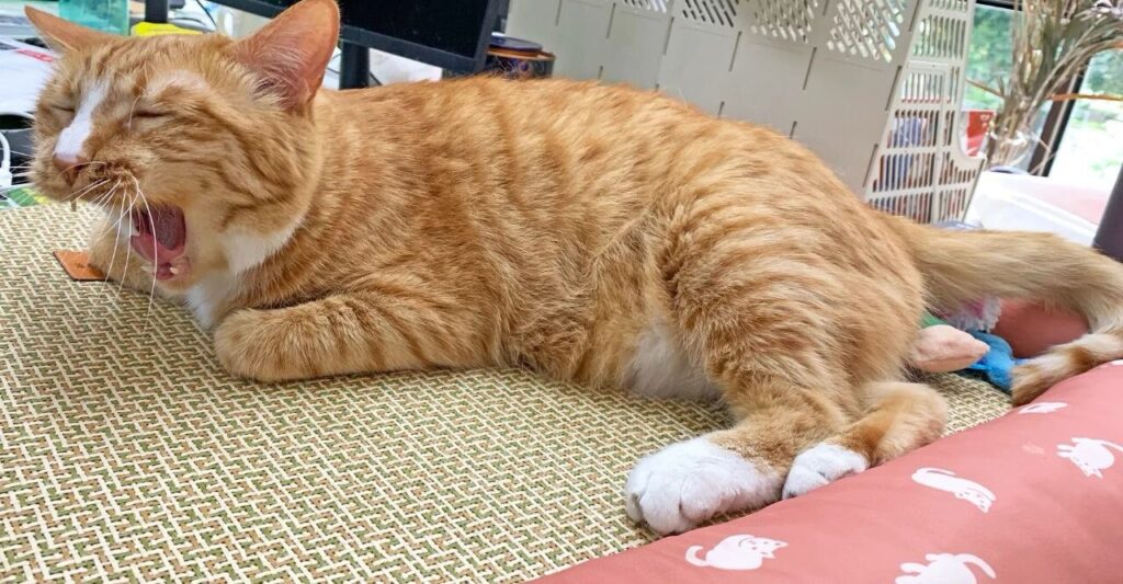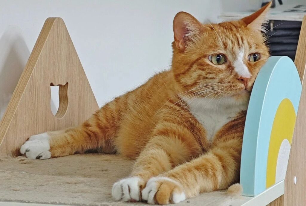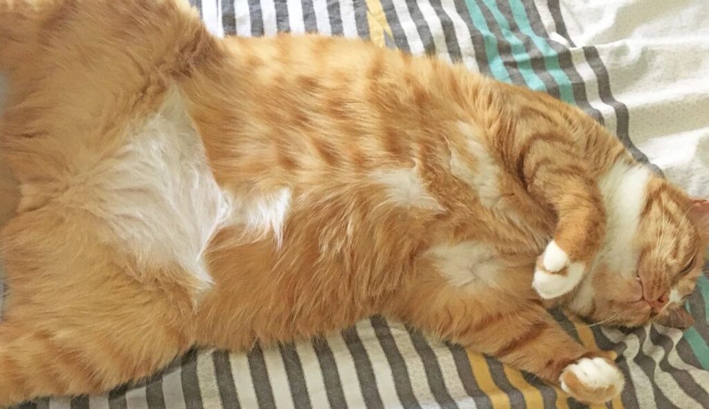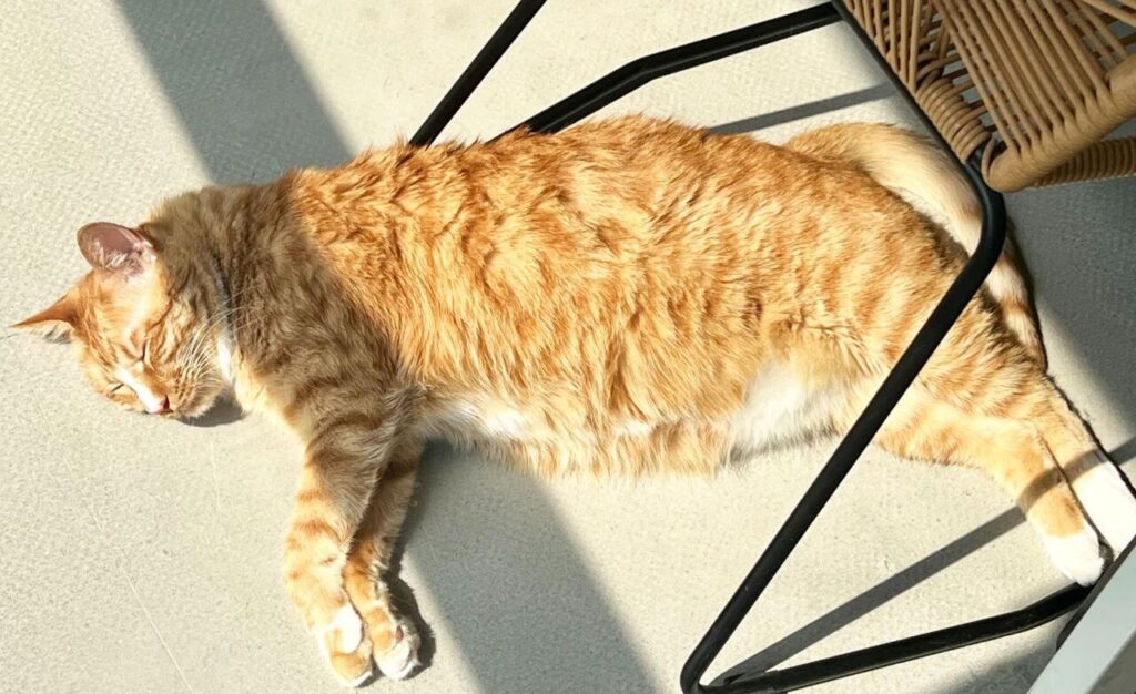 Even if our cat is just sleeping at the end of the bed, just glancing up at its sleeping body makes us feel happy and safe.