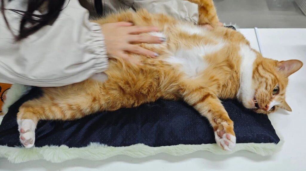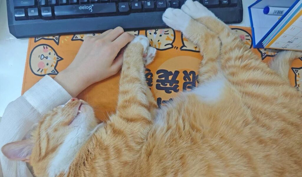 For example, rubbing a cat’s belly