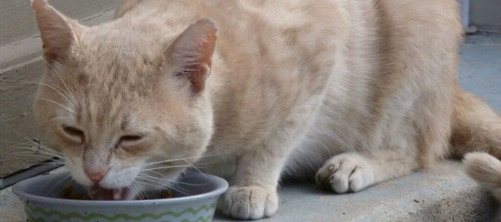 Before adoption: Meals were irregular, requiring the cat to hunt or find its own food.